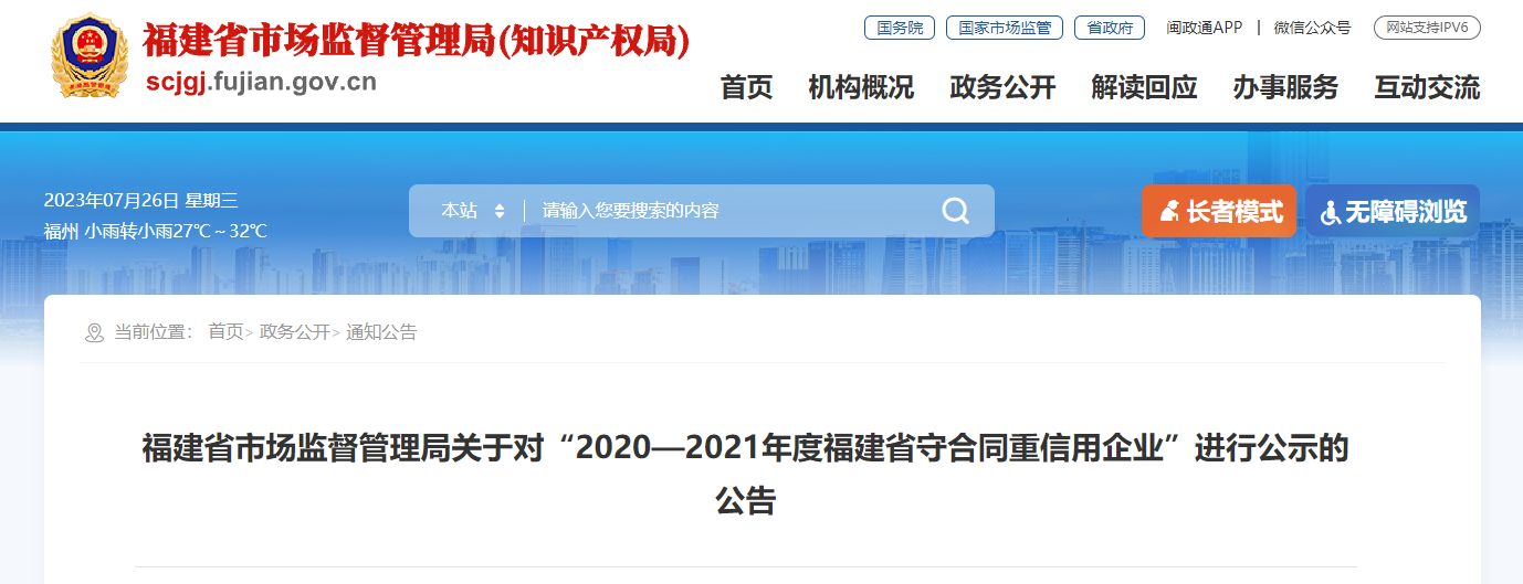 恭喜建融集團(tuán)榮獲“2020—2021年度福建省守合同重信